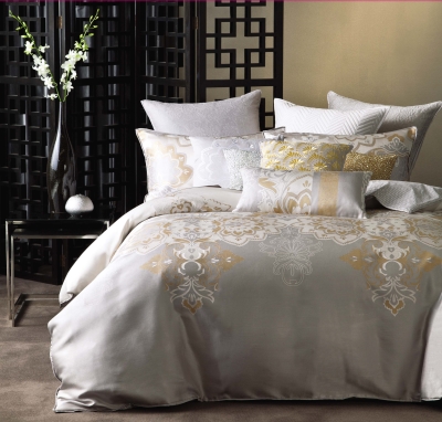 ITEM #: SZJC16025 Polyester yarn dyed jacquard quilt cover set Colourway: gold Front: 100% polyester yarn dyed jacquard 100Dx200D 160x114 Reverse: T/C 50/50 40x40 110x70 printed Style: standard style